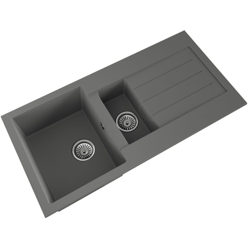 Balterley - 101cm Kitchen 1.5 Bowl Composite Inset Sink with Overflow & Drainer - Matt Grey