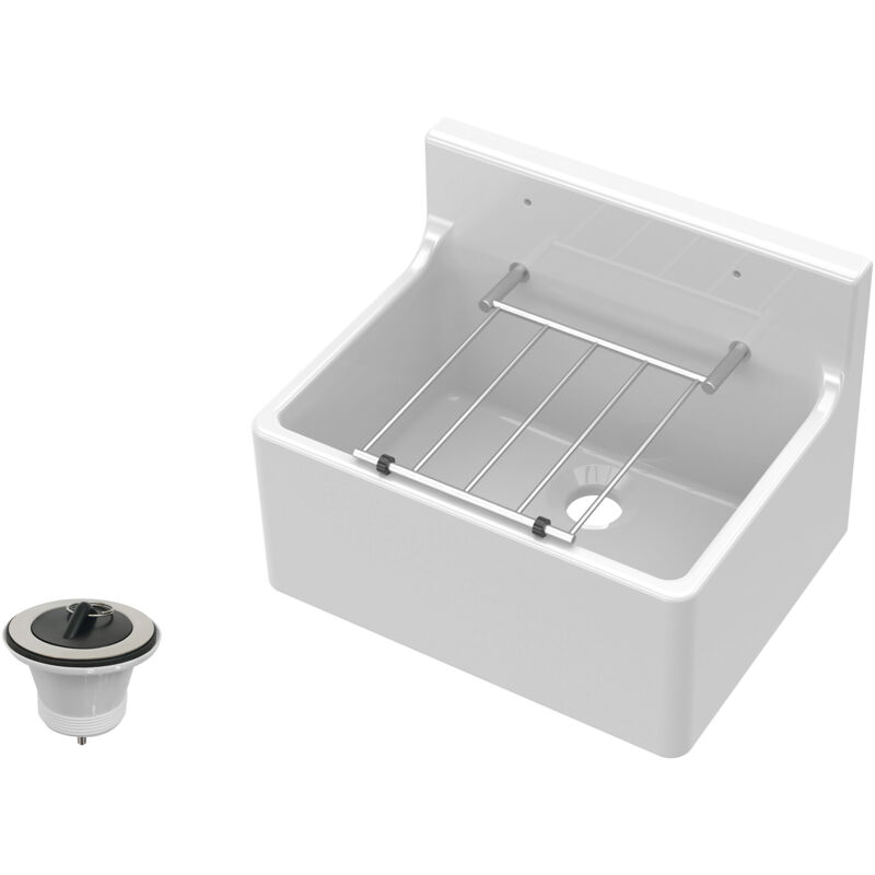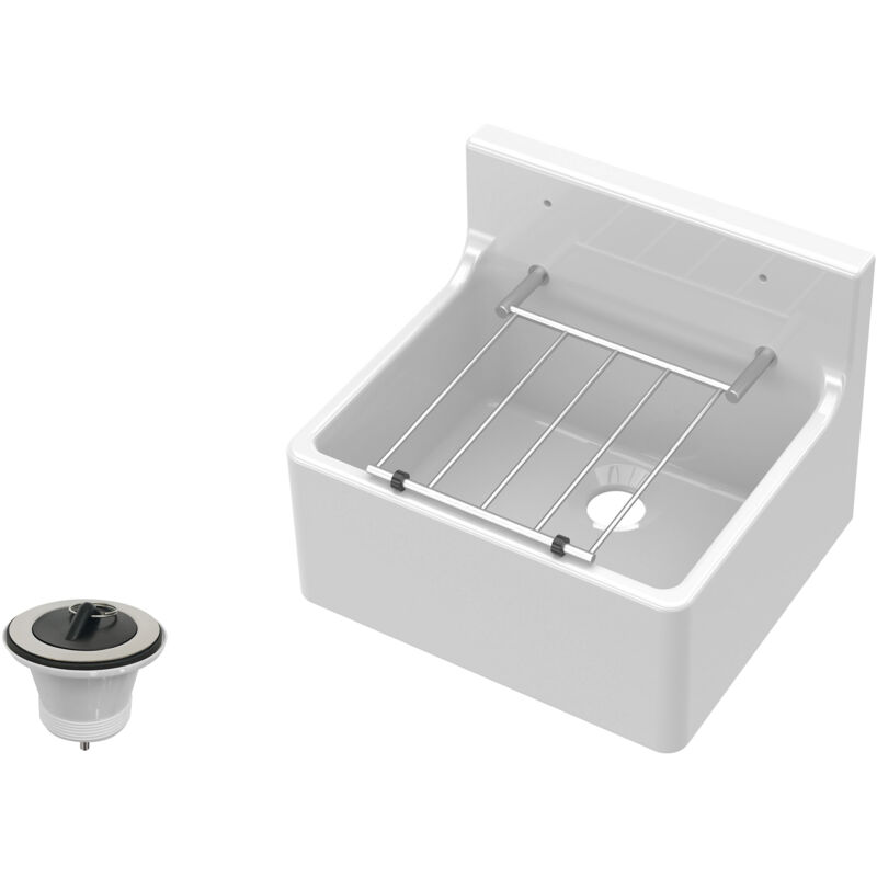 Balterley - Single Bowl Fireclay Ceramic Cleaner Sink with Grill & Legs, 455 x 362 x 396 - White/Chrome