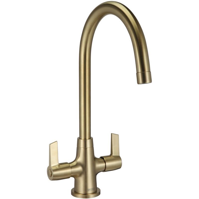 Balterley L-Neck Kitchen Sink Mixer Tap - Top Fix Installation, Brushed Brass in Metallics Metallics