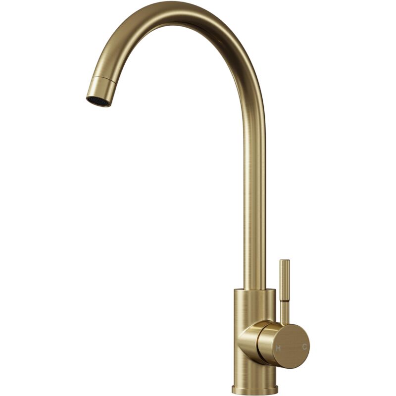 Balterley Modern Round Single Lever Kitchen Sink Mixer Tap - Top Fix Installation, 355 x 90 x 245mm, Brushed Brass Finish