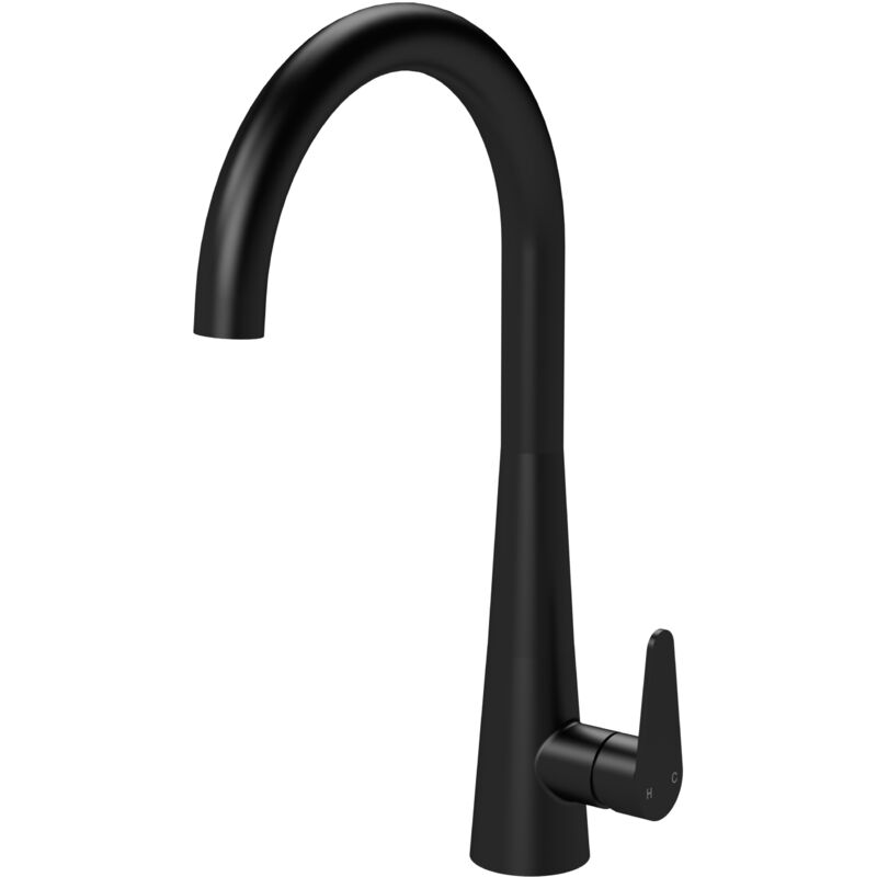 Balterley Lacerta Kitchen Mono Mixer Tap, High Curved Swivel Spout Matt Black Black