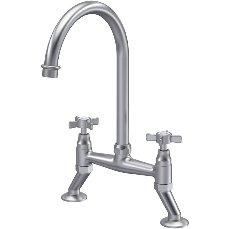 Nuie - Traditional Bridge Mixer Kitchen Tap with Crosshead Handles - Brushed Nickel