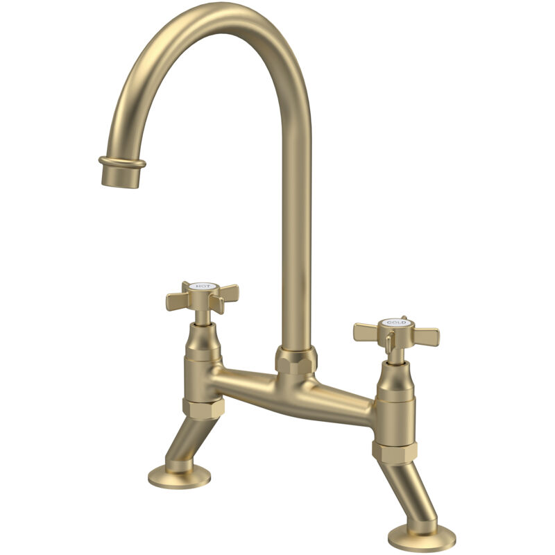 Nuie - Bridge Kitchen Sink Mixer Tap Crosshead Handle - Brushed Brass