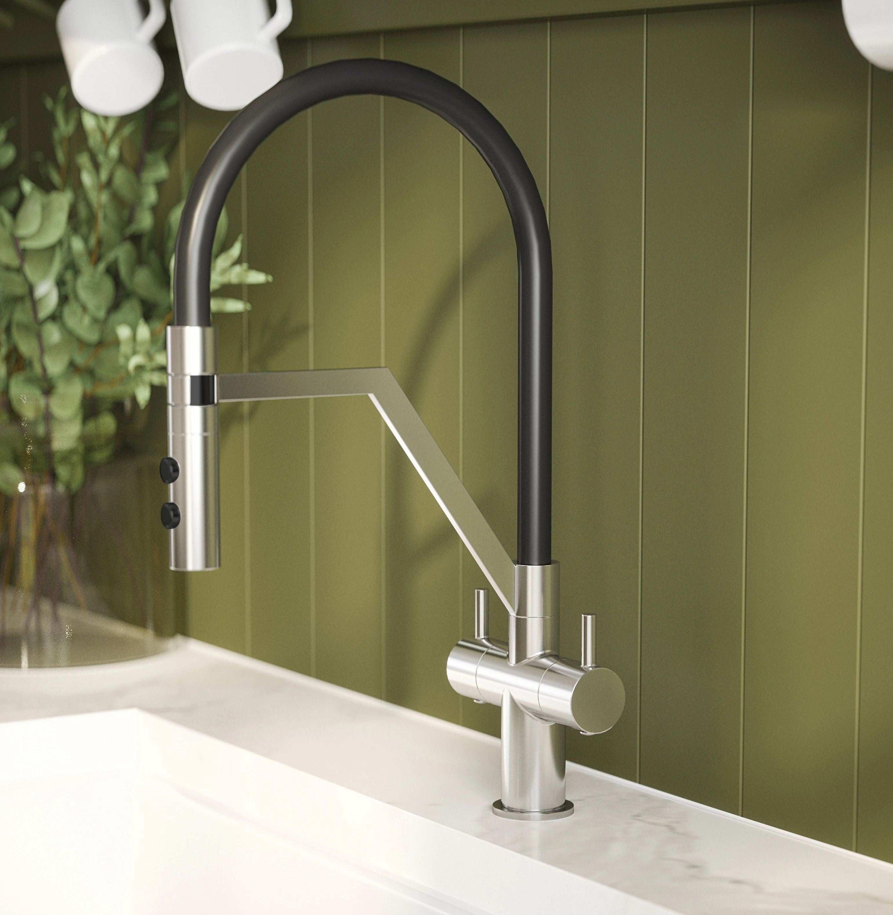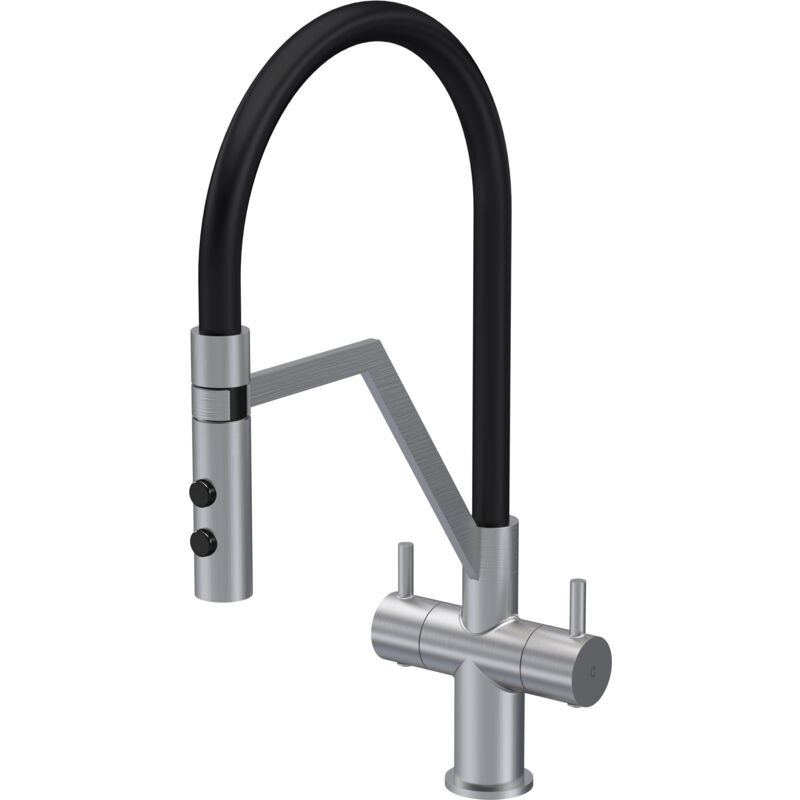 Aquess Ravi Chrome Pull Out Kitchen Mixer Tap - Twin Lever