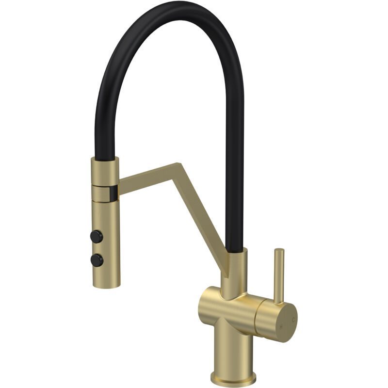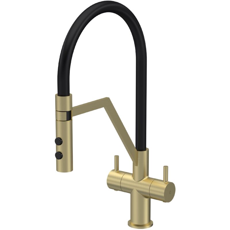 Aquess Ravi Brushed Brass Pull Out Kitchen Mixer Tap - Twin Lever
