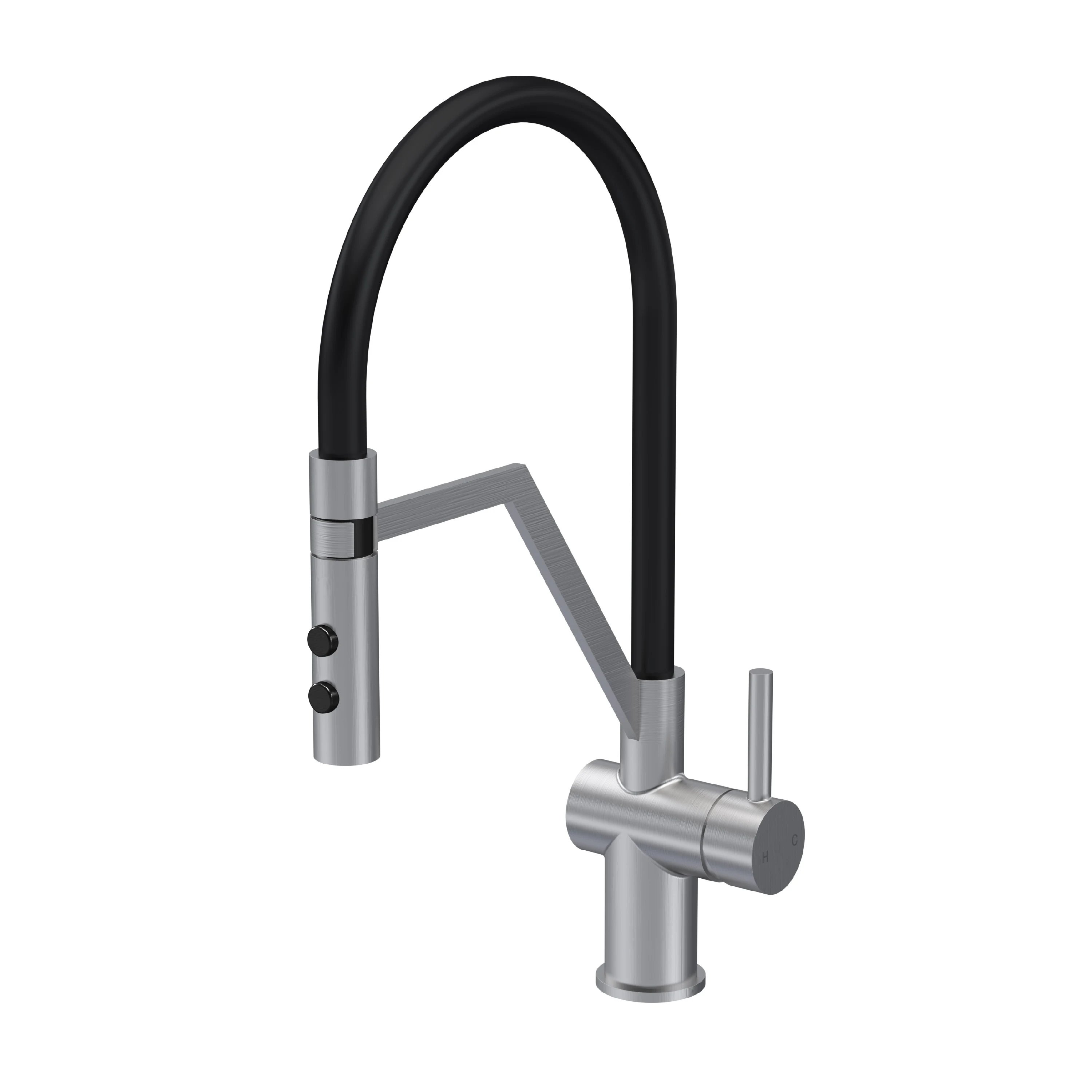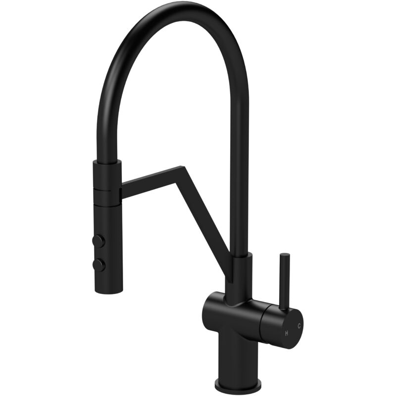 Balterley Rana Kitchen Mono Mixer Tap Curved Swivel Spout Dual Lever Matt Black Black