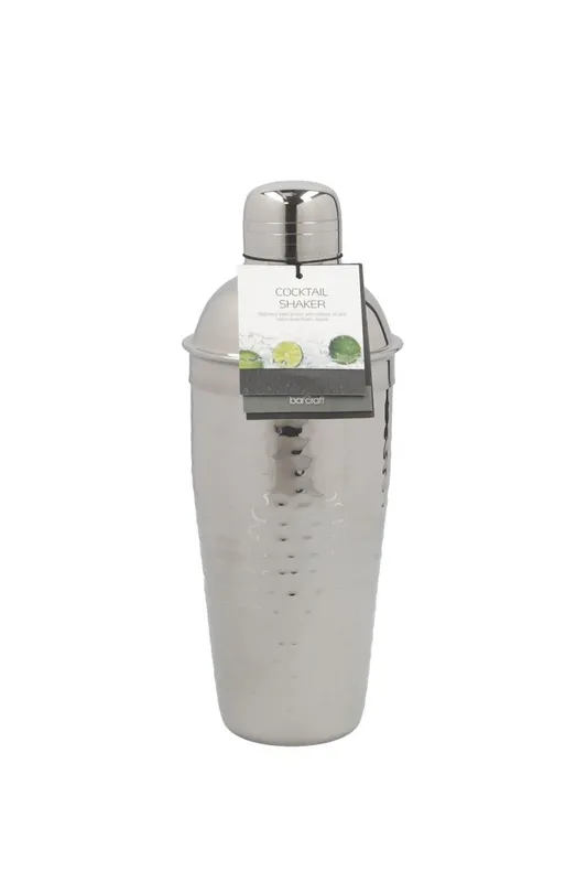 BarCraft Hammered Stainless Steel Cocktail Shaker with Built-In Strainer, 700ml in Silver Silver