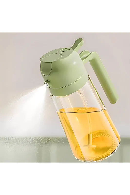 Living and Home 2-in-1 600ml/475ml Premium Glass Oil Sprayer & Dispenser in Green Size: 600ml - Green - Size: 600ml