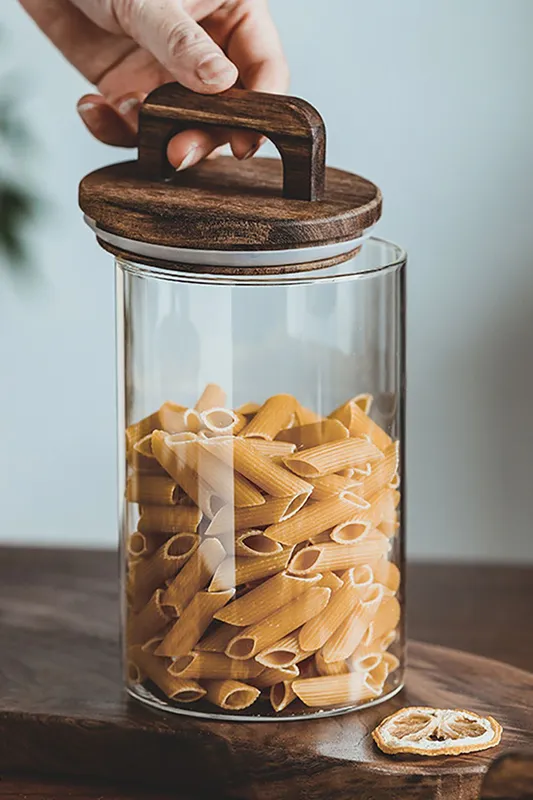 Living and Home 800ML Glass Storage Jars Canister Pots Food Cereal Container with Wooden Airtight Lids in Clear Clear