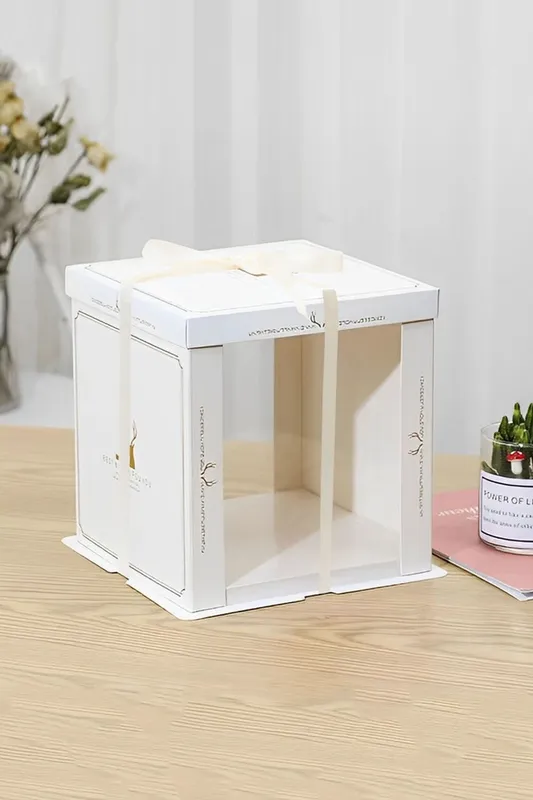 Living and Home Cake Gift Box Display with Ribbon for Valentine's Day in White White