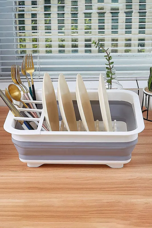 Living and Home Collapsible Kitchen Plastic Dish Drainer Rack Drying Rack Drainage Basket in White White