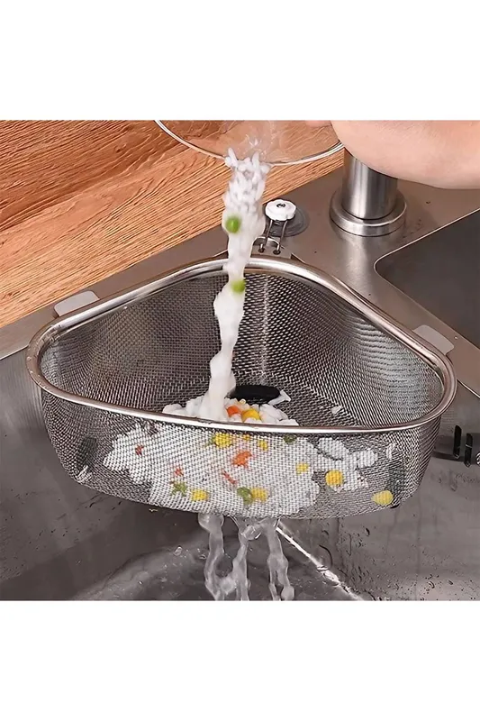 Living and Home Stainless Steel Drainer Wire Mesh Sink Strainer Basket Food Container for Filtering Kitchen with Fixed Suction Cup in Silver - Silver - Size: One Size