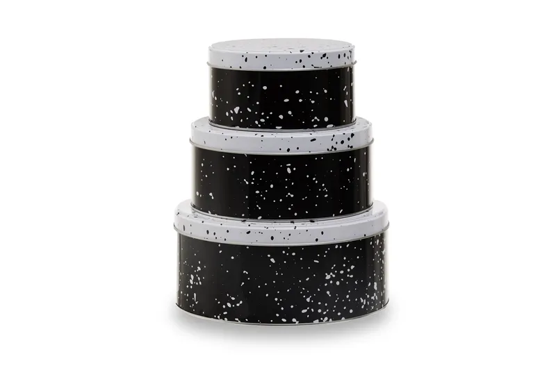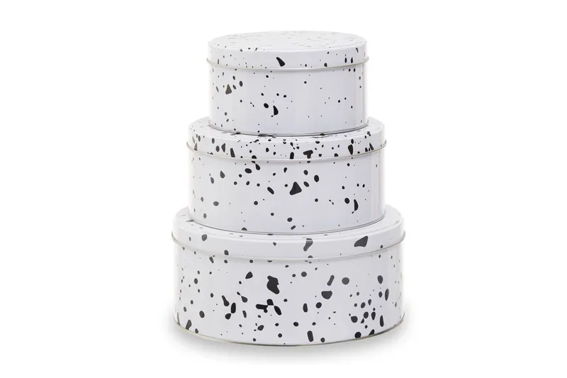 Orsina Set Of 3 Cake Storage Tins, Stylish Nesting Tins With Colourful Speckle Design & Lids, Ideal For Storing in White White