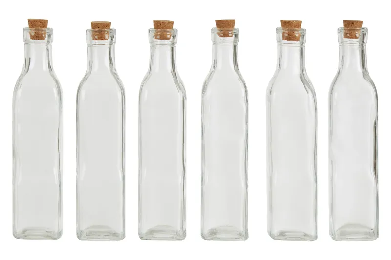 Orsina Versatile Use Set Of 6 Glass Bottles, Glass Bottles For Kitchen, Functional Design Clear Glass Bottles Clear