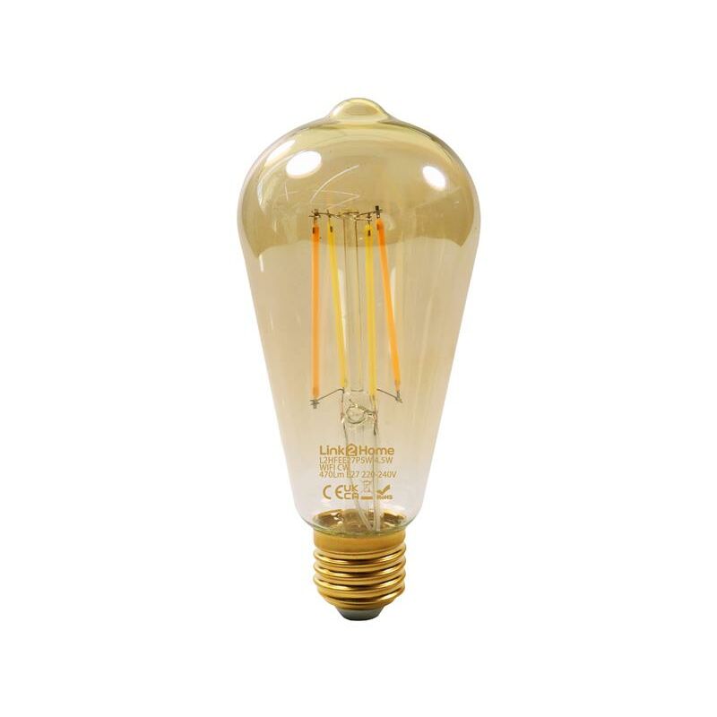 Link2home - Wi-Fi led es E27 Pear Filament Dimmable Bulb, White 470 lm 4.5W