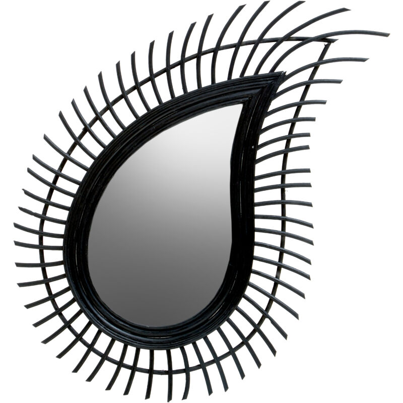 Premier Housewares - Interiors by Premier Teardrop Black Natural Rattan Wall Mirror, Large Wood Wall Mirror, Mirror with Rattan Frame, Tear Mirror