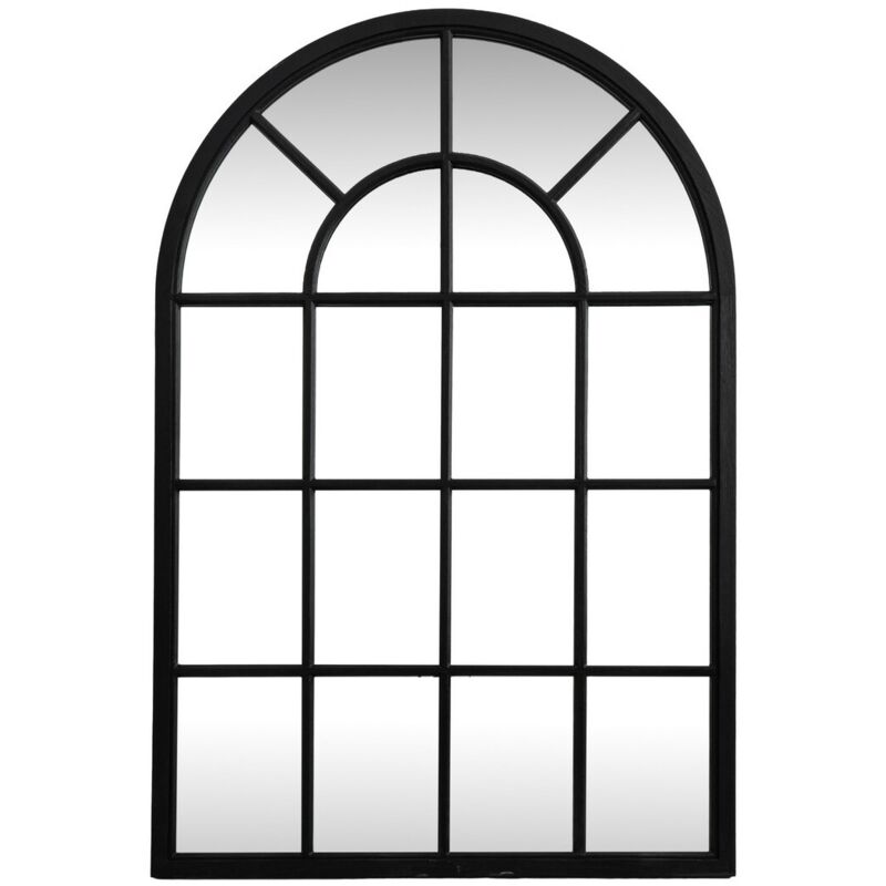 Black Wood Arched Window Mirror - Glass - L2 x W135 x H90 cm - Black