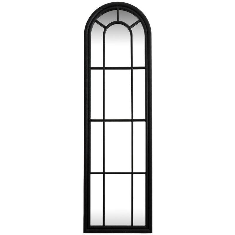 Black Wood Tall Arched Window Mirror - Glass - L3 x W50 x H170 cm - Black