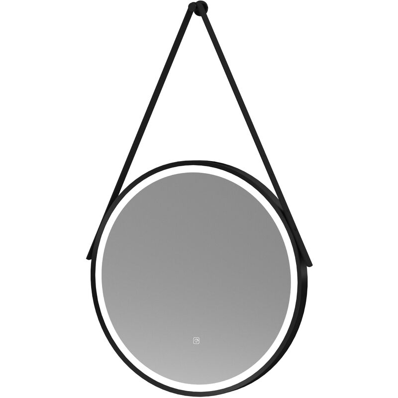 Balterley - Round led Illuminated Touch Sensor Framed Mirror with Demister & Strap, 600mm - Black