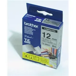 Brother P-Touch TZe Laminated Tape 12mm x 8m Black on Silver TZEM931