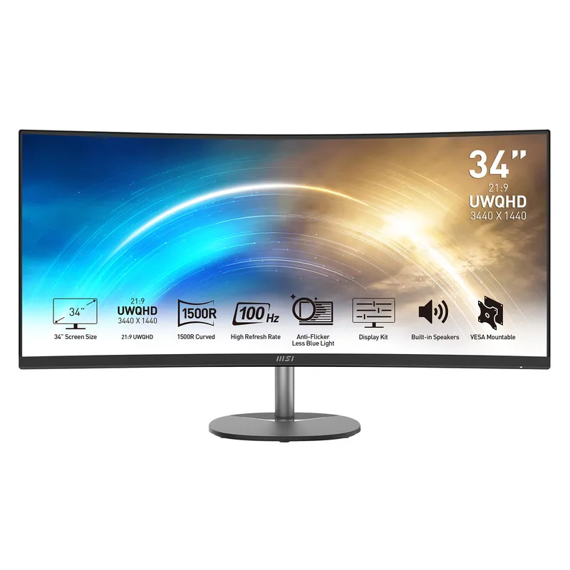 MSI PRO MP341CQ 34" Curved Ultrawide QHD 100Hz Freesync Monitor with Speakers