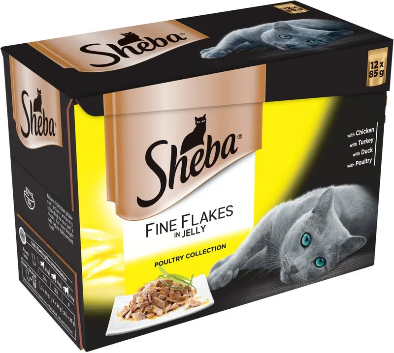 Sheba Pouches Fine Flakes Saver Pack 96 x 85g - Poultry Collection in Jelly