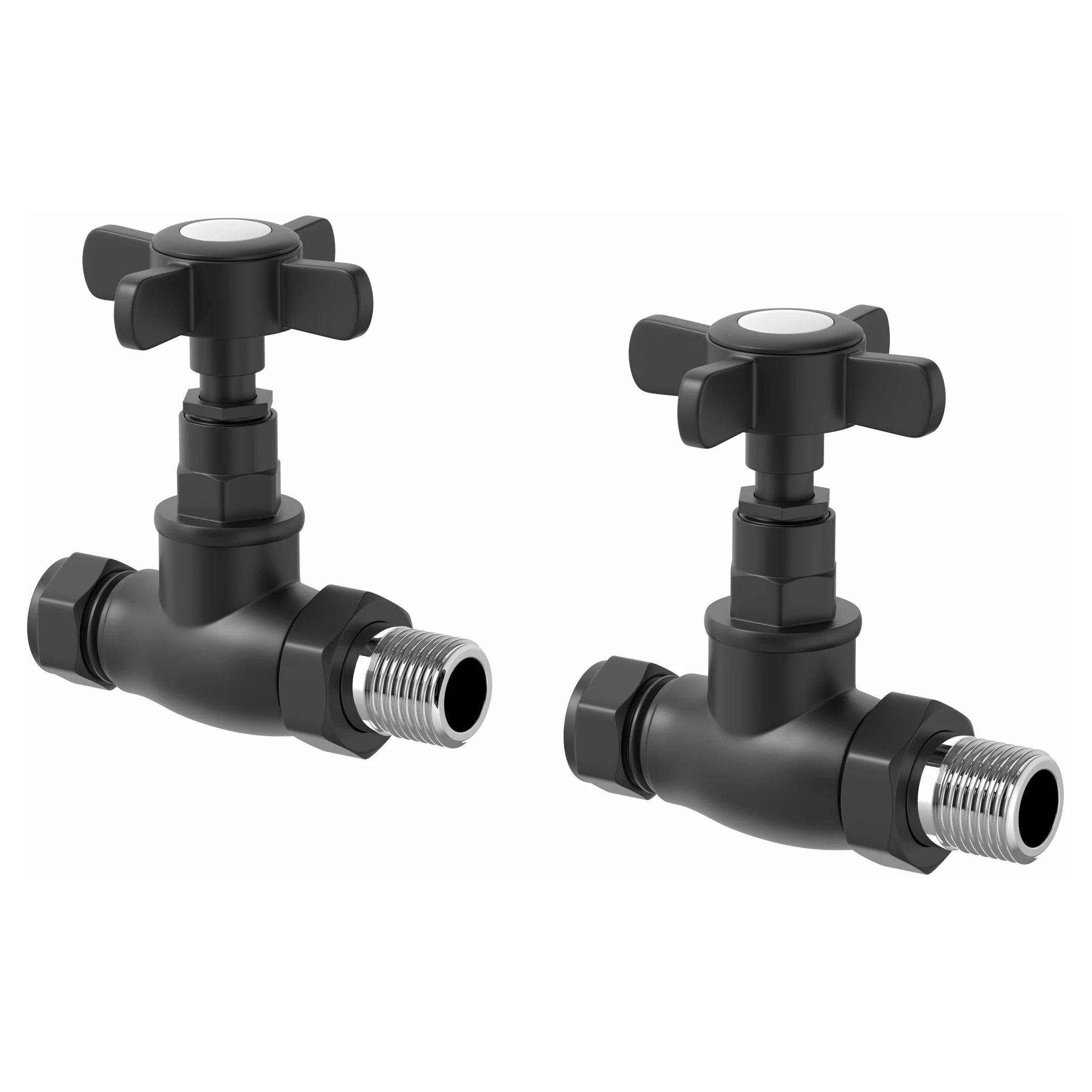 DuraTherm Standard Black Cross Head Straight Radiator Valves - 15mm
