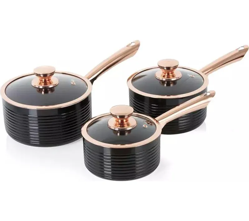 TOWER Linear T800001RB 3-piece Non-stick Saucepan Set - Black & Rose Gold