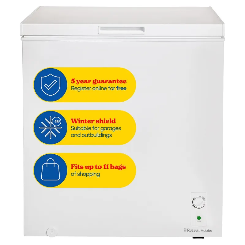 Russell Hobbs Chest Freezer 198L Suitable for Garages, Outbuildings RH198CF0E1 in White White