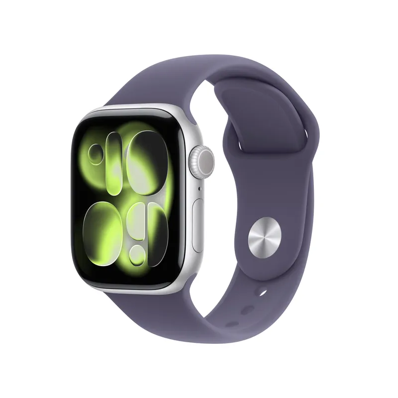 Apple Watch Series 11, 42mm, Silver Aluminium Case, GPS [2025] - Purple Fog Sport Band - M/L, Purple