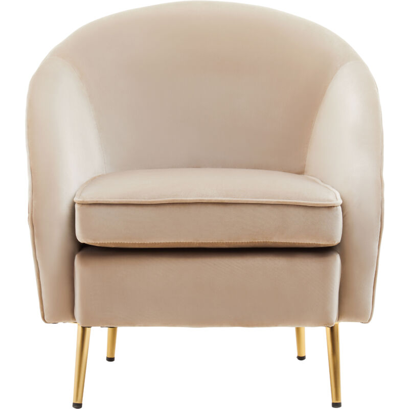 Premier Housewares Interiors by Premier Natural Occasional Arm Chair with Curved Back, Velvet Upholstered Chair, Indoor Lounge Chair for Living Room