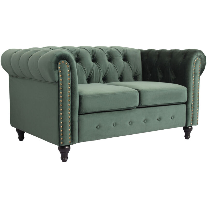 Furniture One - 155cm Width Upholstered Sofa Chair with Nailhead Trim - Green