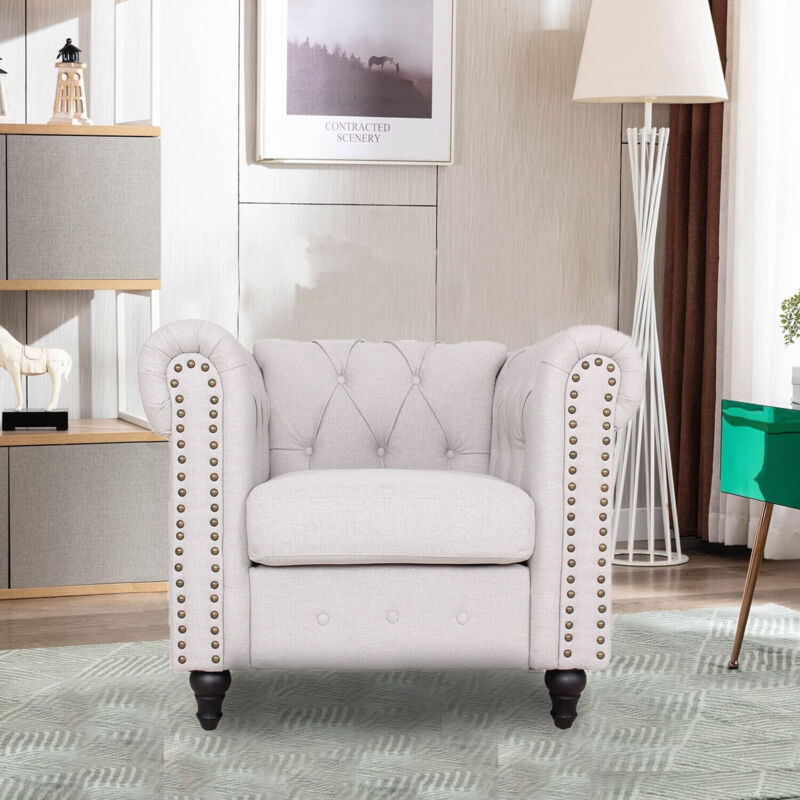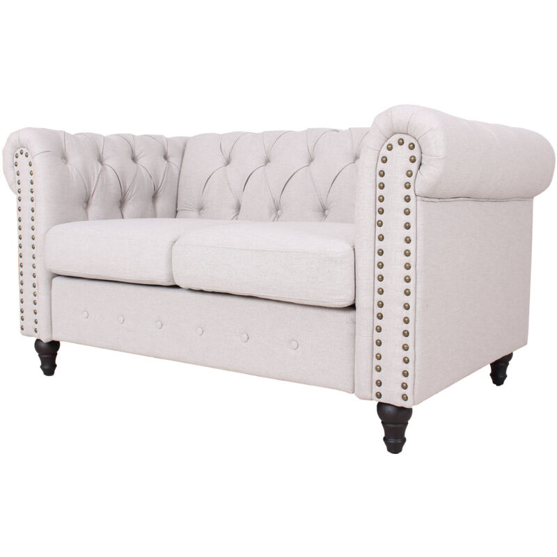 Furniture One - 155cm Width Upholstered Sofa Chair with Nailhead Trim - Cream