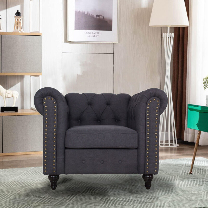 Furniture One - 155cm Width Upholstered Sofa Chair with Nailhead Trim - Dark Grey