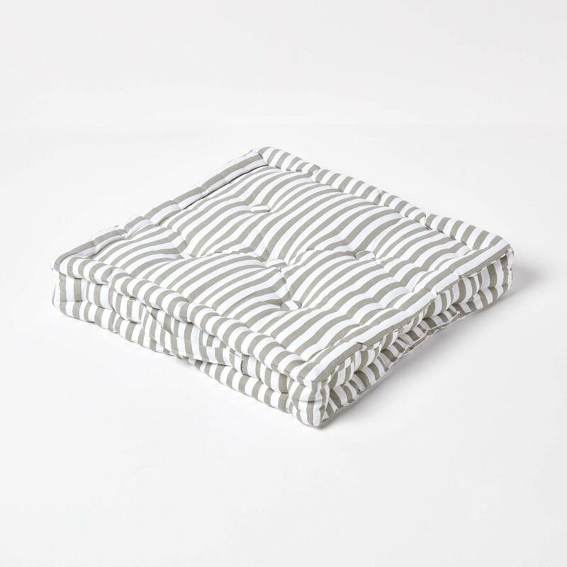 Homescapes - Cotton Light Grey Thin Stripe Floor Cushion, 50 x 50 cm