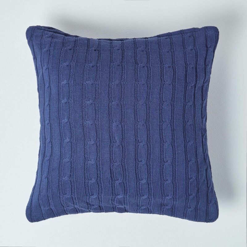 Homescapes - Cotton Cable Knit Navy Blue Cushion Cover, 45 x 45 cm