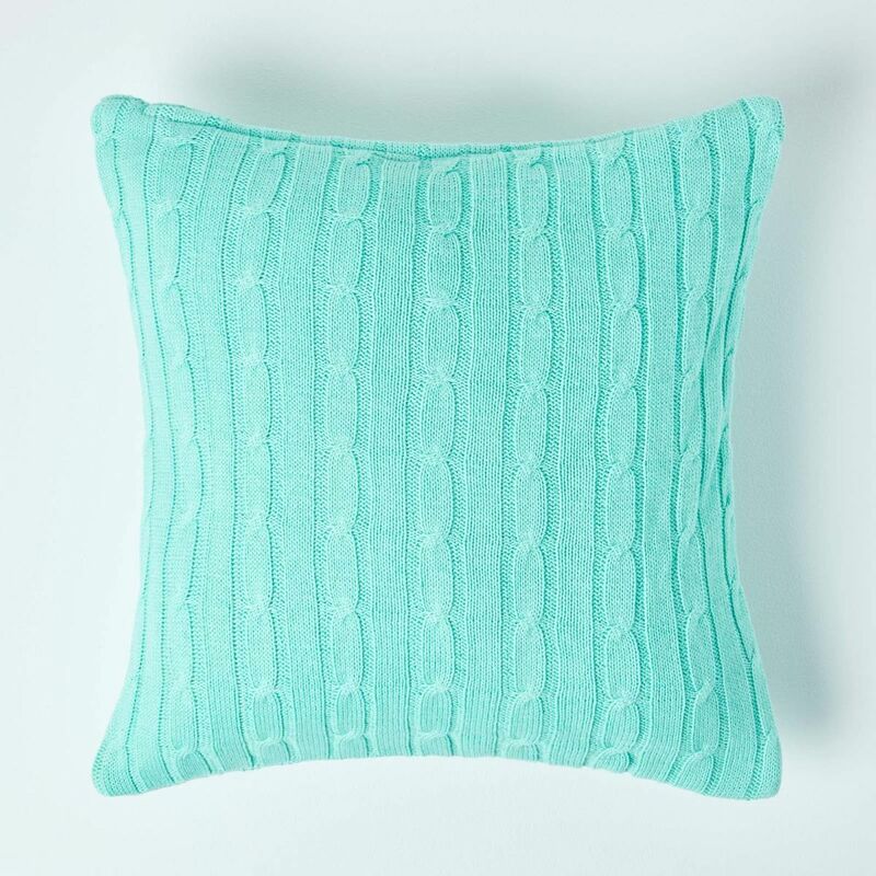 Homescapes Unisex Cotton Cable Knit Cushion Cover, 45 x 45 cm in Duck Egg Blue Size: 45cm x 45cm Duck Egg Blue 45cm x 45cm female