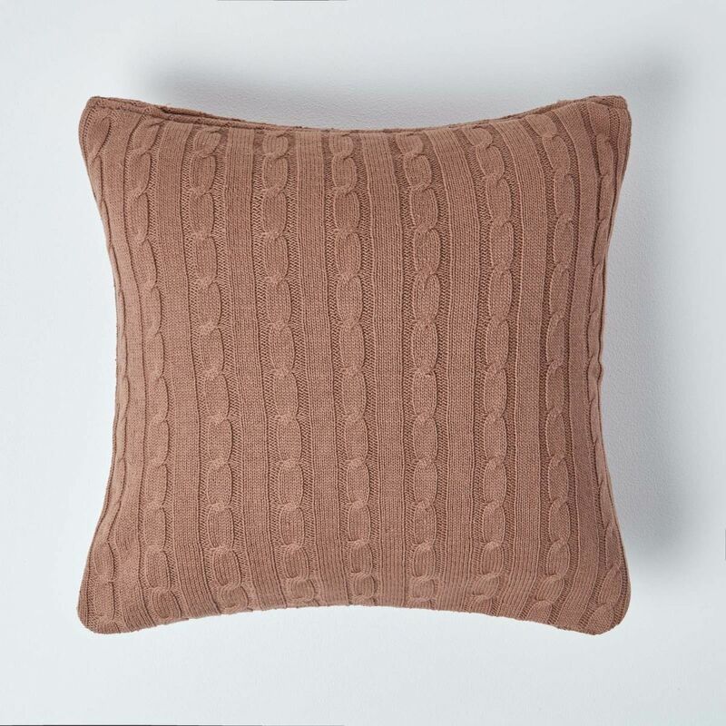 Homescapes - Cotton Cable Knit Chocolate Brown Cushion Cover, 45 x 45 cm