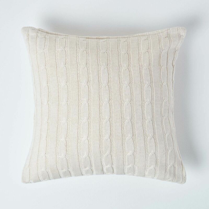 Homescapes - Cotton Cable Knit Natural Cushion Cover, 45 x 45 cm