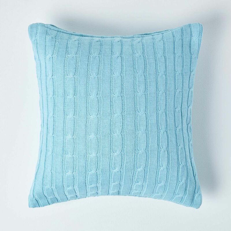 Homescapes Cotton Cable Knit Pastel Blue Cushion Cover, 45 x 45 cm