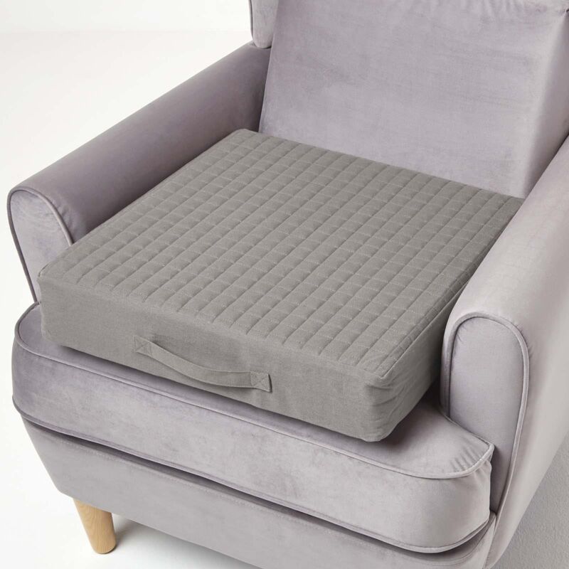Grey Cotton Orthopaedic Foam Armchair Booster Cushion - Homescapes