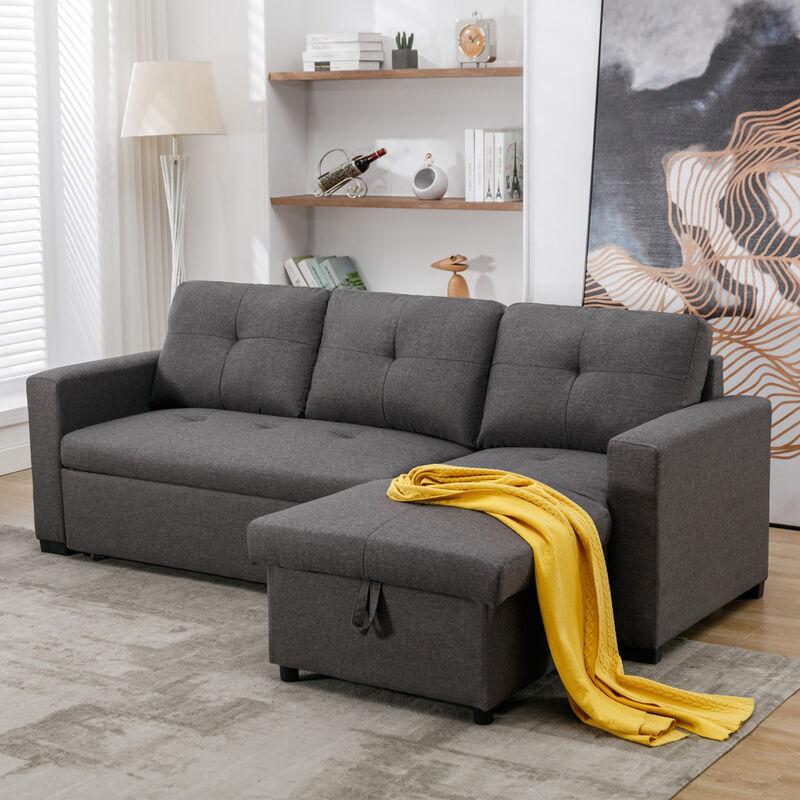 More4homes - newport fabric corner chaise 3 seater sofa bed with storage left or right side grey - Grey