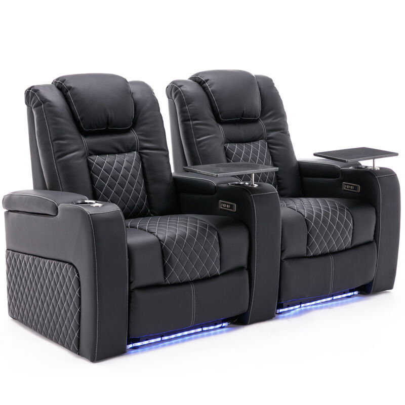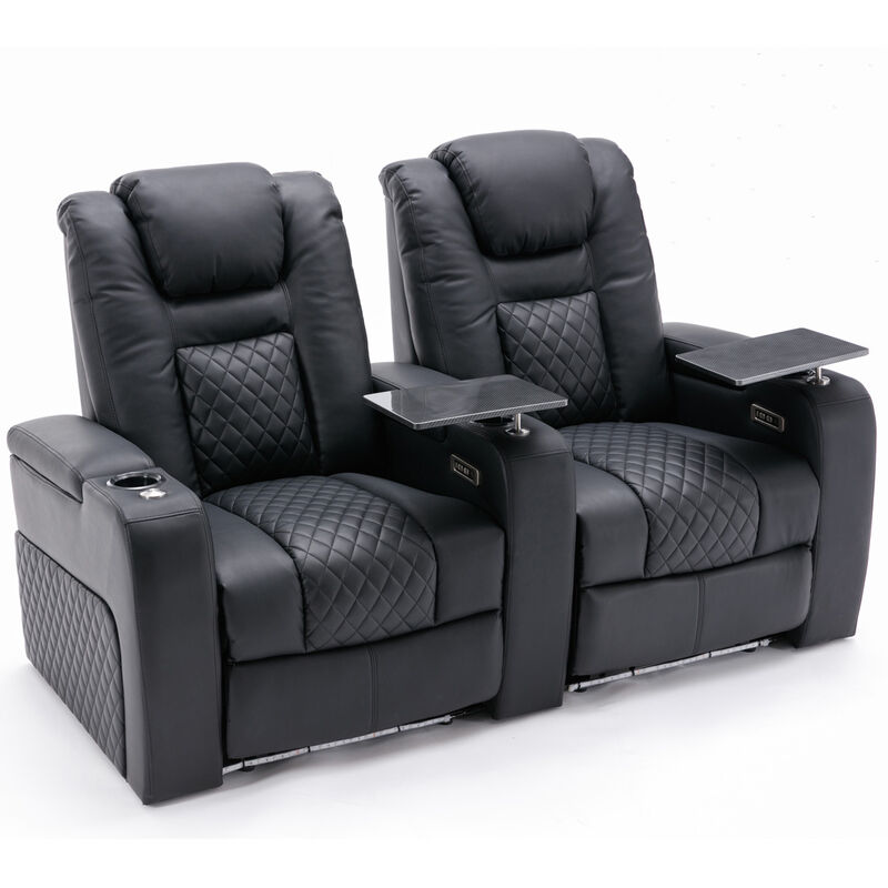 More4Homes Broadway 2 Seater Cinema Electric Recliner Chair USB Charging LED Base in Black Black