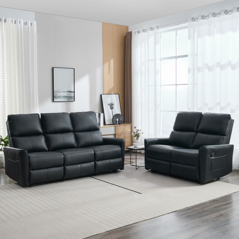 MORE4HOMES Madrid 2+3 Seater Manual Recliner Air Leather Sofa Set Black