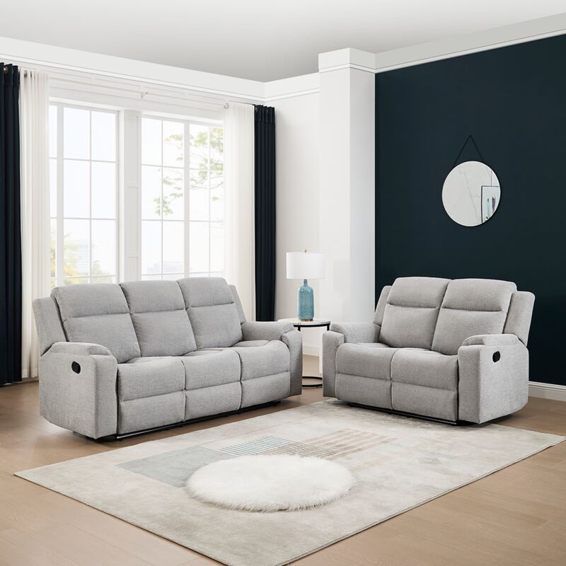 More4homes - sydney 2+3 seater fabric manual recliner sofa set grey - Grey