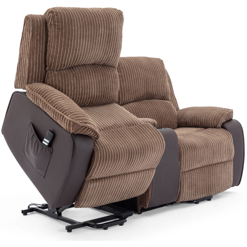 MORE4HOMES Postana Dual Motor Rise Recliner 2 Seater Jumbo Cord Drinks Console Mobility Sofa (Brown)