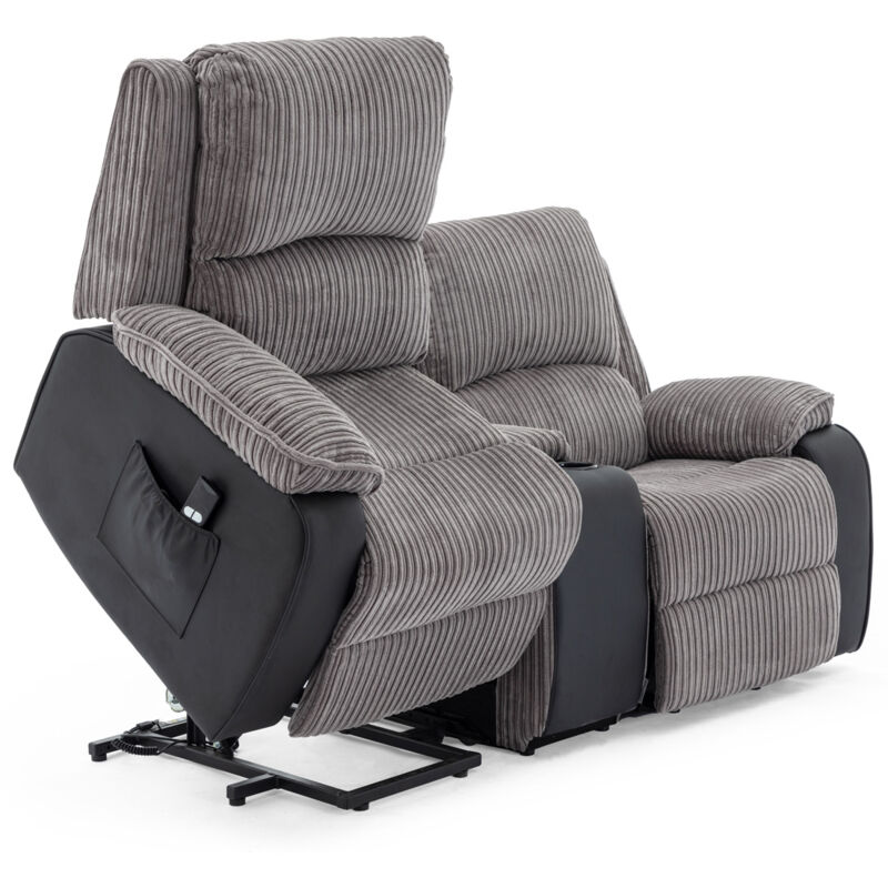 More4homes - postana single motor rise recliner 2 seater jumbo cord drinks console mobility sofa (Grey) - Grey