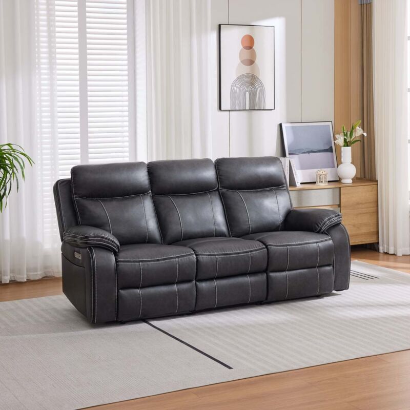 MORE4HOMES Vinson Electric Recliner 3 Seater Sofa Air Leather With Built-In Plugs & USB-C Charging