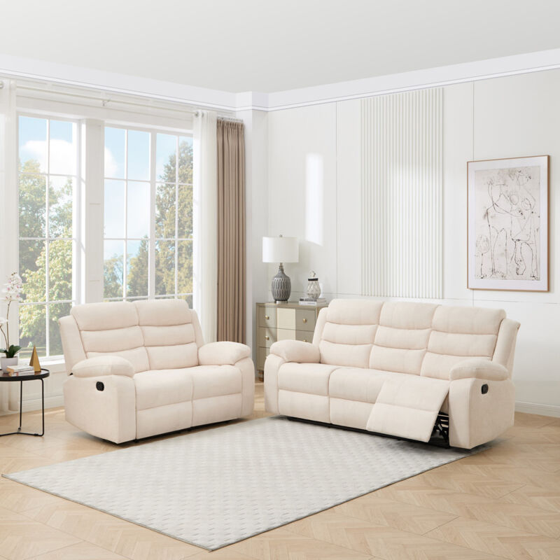 MORE4HOMES Boston 2+3 Seater Manual Fabric Recliner Sofa Beige