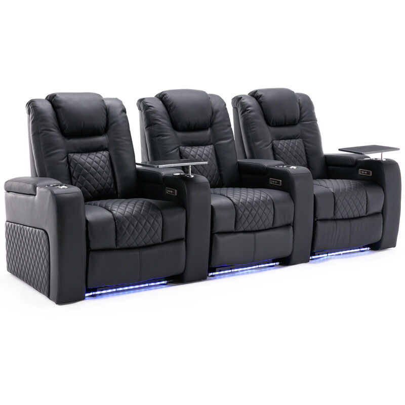 More4Homes Broadway 3 Seater Cinema Electric Recliner Chair USB LED Base w Tray in Black Black